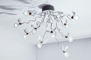 I Ricchi Poveri is nog steeds een jonge verlichtingsfamilie uit 2014. Het is verkrijgbaar in de versies "Toto", "Monument voor een bol", "Vlieg", "Vijf vlinders" en "Bzzzz" en zal gegarandeerd nieuwsgierige blikken en geïnteresseerde vragen trekken. In sommige modellen wordt een speciaal voor deze armaturenreeks geproduceerde lamp gebruikt - een traditionele gloeilamp - die een aangename verlichtingssfeer creëert. De I Ricchi Poveri - Fly is daarentegen uitgerust met de allernieuwste LED-technologie en is alleen verkrijgbaar als gelimiteerde editie.