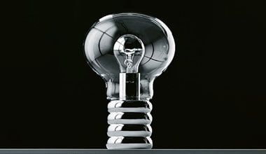 De Bulb tafellamp zet de gloeilamp centraal door de lichtbron te presenteren in een oversized gloeilamp van hoogglans verchroomd metaal en kristalglas. Volgens de ontwerper werd hij geïnspireerd door een prachtige traditionele gloeilamp van 15 watt die hij op zijn bed aan het plafond van zijn hotelkamer ontdekte. Met dit eerbetoon aan de traditionele gloeilamp, die tot dan toe altijd verborgen werd gehouden door kappen, creëerde Ingo Maurer een klassiek armatuur dat het Museum Of Modern Art in New York heeft gehaald.