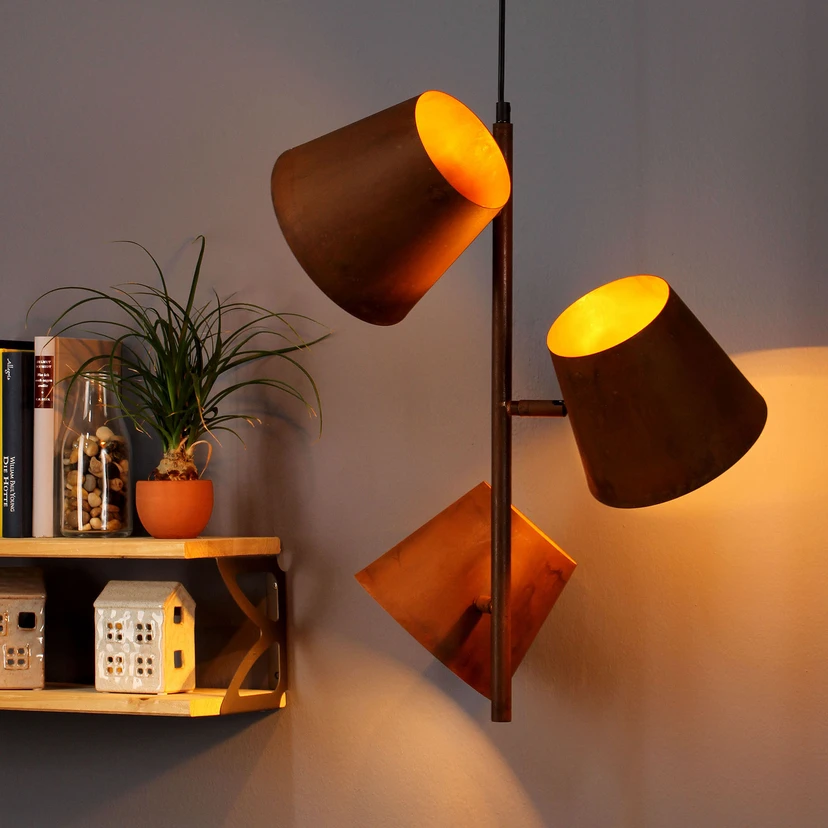 Hanglamp Colt met drie kappen in een verouderde look De 3-lamps hanglamp Colt biedt zowel directe, neerwaartse verlichting als indirecte verlichting via het Deck. Die kappen, die op verschillende hoogtes en oriëntaties aan een centrale stang zijn bevestigd, kunnen naar wens individueel worden uitgelijnd, bijvoorbeeld om het licht aan te passen aan de grootte van de tafel. Met zijn verouderde afwerking ziet Colt er geweldig uit in zowel moderne als industriële interieurs.