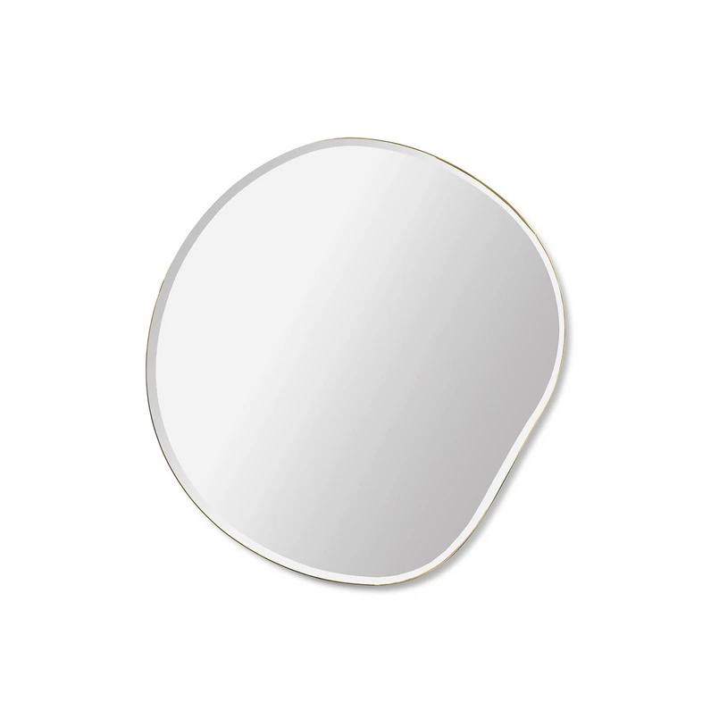 Organisch spel aan de wand: Pond S spiegel van ferm LIVING Met twee afzonderlijke spiegels verkent deze serie, die ook de Pond S wandspiegel omvat, organische vormen voor een klassieke spiegel met een metalen frame. Geïnspireerd door de vrij stromende beweging van water, nodigt de spiegel open en vloeiende vormen uit in je huis, waardoor de functionele spiegel een decoratief wandstuk wordt. De spiegel kan zowel verticaal als horizontaal worden opgehangen, zodat je de perfecte oplossing kunt vinden voor de kamer en je behoeften. Product opmerkingen: Spiegelglas op MDF drager met zinken frame. Het frame heeft een laspunt waar het metaal is versmolten. Kan ook horizontaal worden opgehangen. Inclusief L-vormige schroeven: Afnemen met een zachte, vochtige doek of voorzichtig schoonmaken met een zachte spons en een mild schoonmaakmiddel.