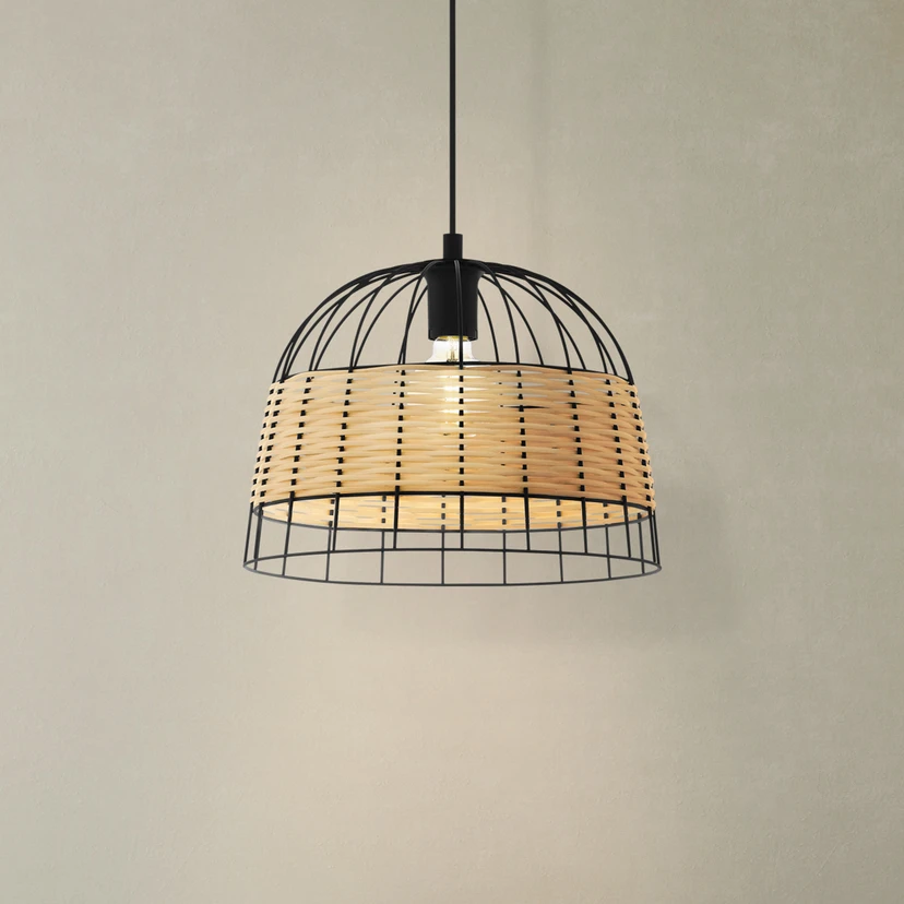 Hanglamp Anwick van staal/rotan, Ø 37 cm
