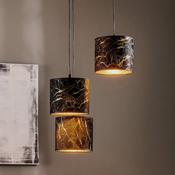 Hanglamp Jari stof 3-lamps rond zwart gemarmerd