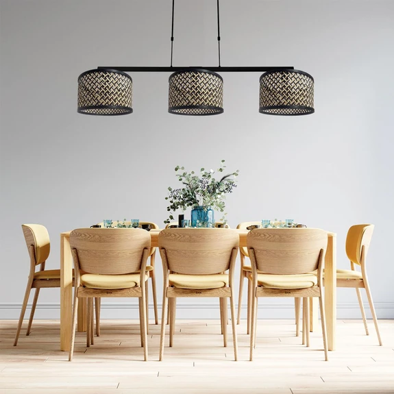 Hanglamp Stang, vlechtwerk naturel/zwart, 3-lamps Levertijd: 10 - 15 werkdagen