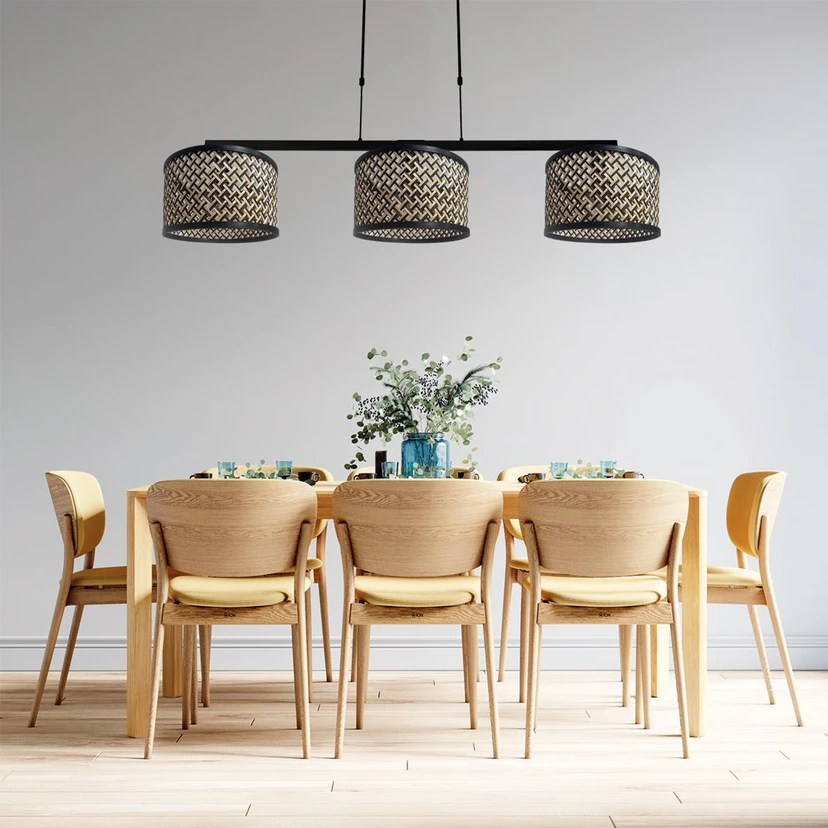 Hanglamp Stang, vlechtwerk naturel/zwart, 3-lamps