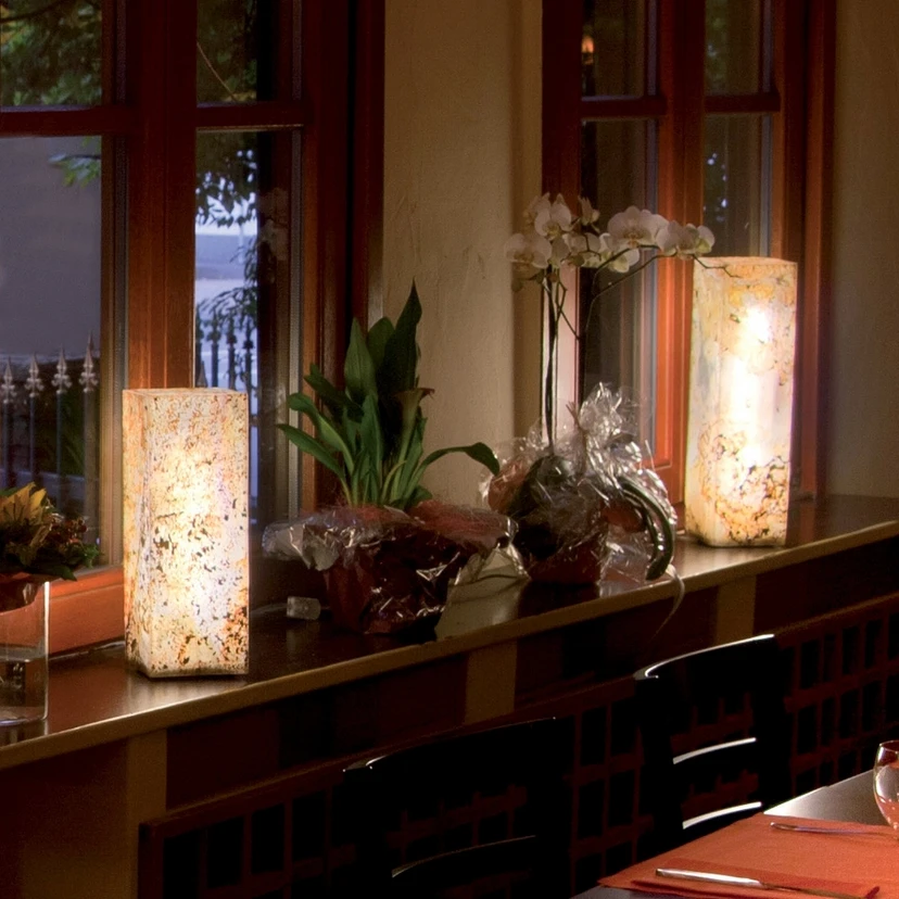 Lichtzuil van natuurlijk leisteen voor ontspannen verlichting Het robuuste natuurlijke materiaal leisteen zorgt met zijn unieke korrel voor een onvergelijkbaar beeld op de verlichte en niet-verlichte kap van deze lichtzuil. Effectieve patronen ontvouwen zich over een lengte van 11 cm en een breedte van 11 cm - elk licht is uniek. Aangenaam in elke kamer: de lichtzuil Dankzij zijn donkere tint harmonieert de lichtzuil met zowel moderne als klassieke inrichtingsstijlen. Hij is geschikt als blikvanger op het dressoir in de gang, in combinatie met meerdere lampen in de woonkamer of als stralend middelpunt op het nachtkastje. Een E27 fitting maakt het gebruik van spaarlampen mogelijk. De lichtzuil in natuurleisteen heeft een aantrekkelijk design en is vriendelijk voor de natuur - eigenschappen die zeker indruk zullen maken.