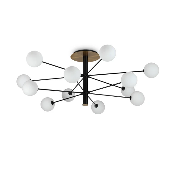 Opvallende Cosmopolitan plafondlamp met een eigentijdse uitstralingEen geraffineerd design en een stralend mooi lichteffect kenmerken de Cosmopolitan plafondlamp. De talrijke witte glaslichamen, die over het verticaal lopende metalen frame in zwart en messing zijn verdeeld, verspreiden een rondom stralend, niet-verblindend licht en verlichten elke woonruimte uitstekend. De benodigde G9 lampen zijn reeds bij de levering inbegrepen.