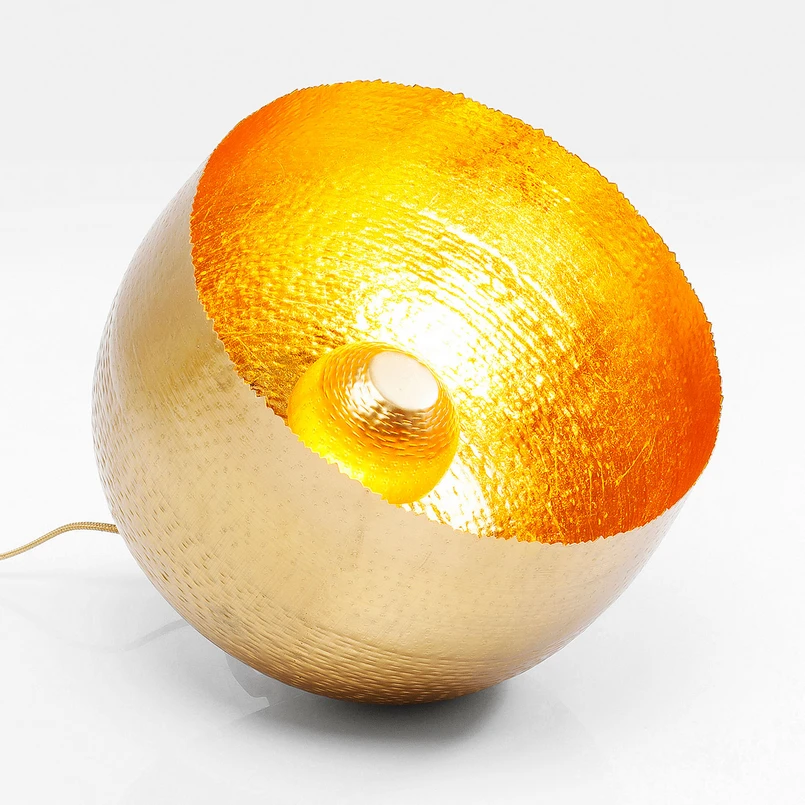 Tafellamp Apollon - blikvanger in mat goudDit interieurelement straalt warmte en glamour uit. Apollon kan overal in het interieur worden geplaatst. De blikvanger van KARE verrijkt elke woonruimte met de bijzondere uitstraling en het gouden licht, dat wordt bereikt door de coating van het staal. In de halve bol is een kleinere lampenkap geplaatst die het licht naar binnen reflecteert, zodat het indirect in de kamer valt.