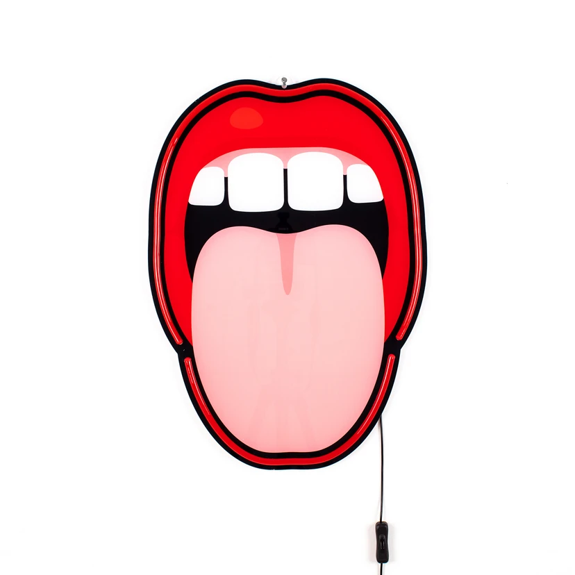 LED deco wandlamp Tongue in pop art stijl met LED lichtstripsDeze lamp laat de harten van pop art fans en liefhebbers van kleurrijke neonverlichting sneller kloppen: De Tongue deco lamp toont het sensuele motief van een rode mond met uitgestoken tong. De wandlamp is gemaakt van acryl en uitgerust met LED-siliconenbuizen die het silhouet van het motief volgen.- Voorzien van insteekkabel en aan/uit-schakelaar- Design by Studio Job
