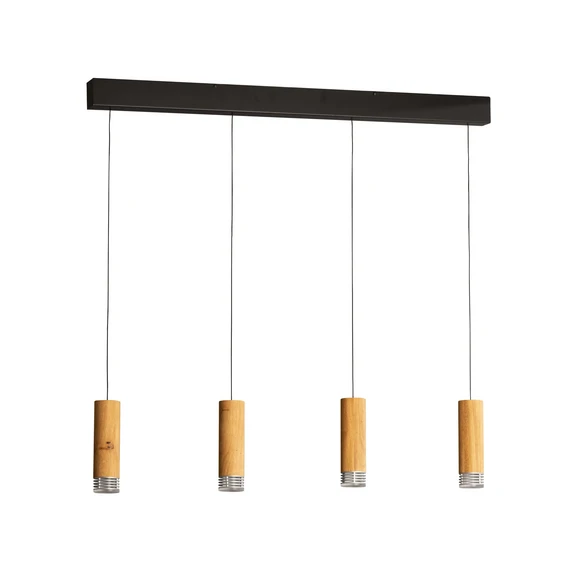 LED hanglamp Shine-Wood, 100 cm, eiken/zwart, 4-lamps.