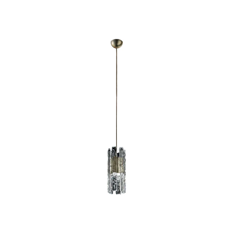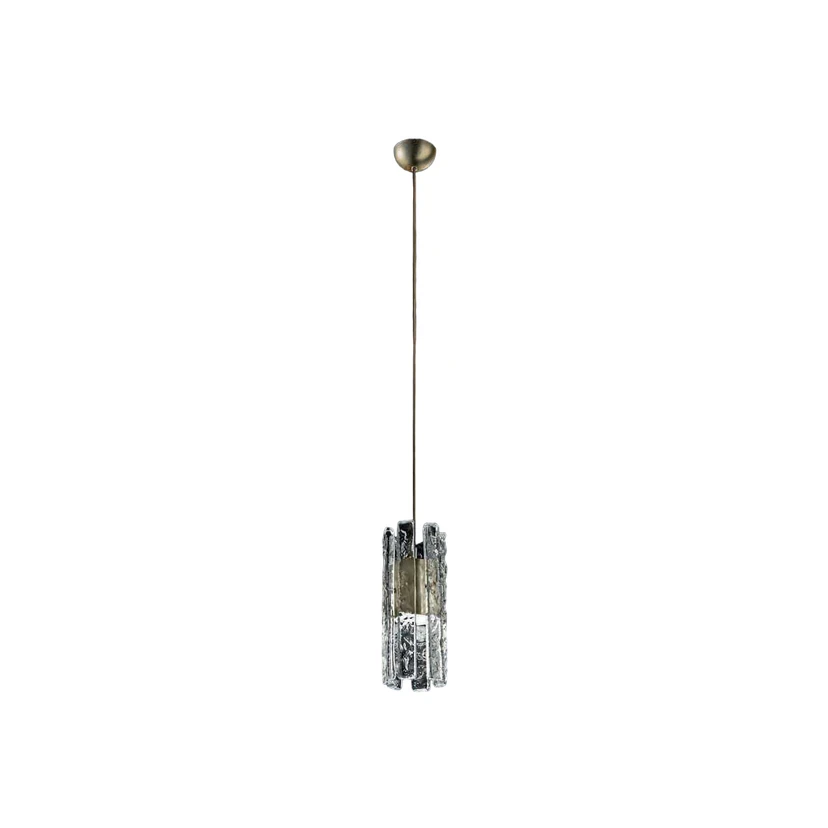 Made in Italy: Vegas Single Round LED hanglamp van handgemaakt kristalglas, warmwit, Ra95 De Vegas Single Round LED hanglamp met een diameter van 12 cm en kap van handgemaakt, getextureerd kristalglas geeft elke kamer een elegante en moderne flair. De geïntegreerde LED-lichtbron zorgt voor een aangename verlichting met warmwit licht en een zeer goede kleurweergave (CRI>95). Met haar designstijl past Vegas perfect in woonkamers, gangen, keukens of eetkamers. Het is ook ideaal voor gebruik in de horeca en het hotelwezen. De armatuur met een metalen frame in bladgoud afwerking is geproduceerd in Italië, is ontworpen door de bekroonde industrieel ontwerper Marc Sadler en maakt indruk met zijn hoge kwaliteit en vakmanschap.