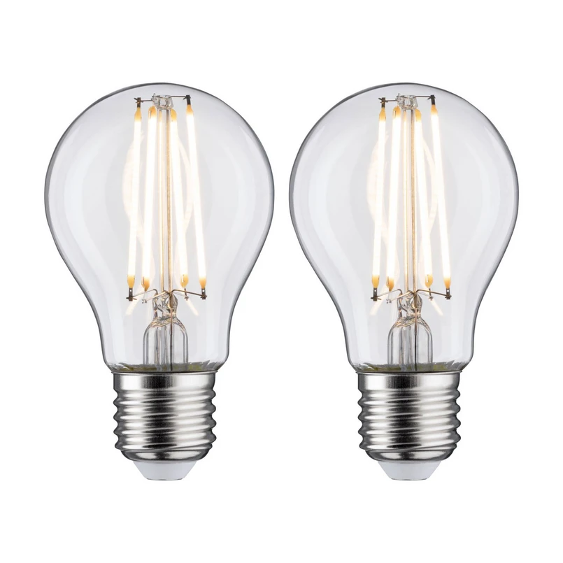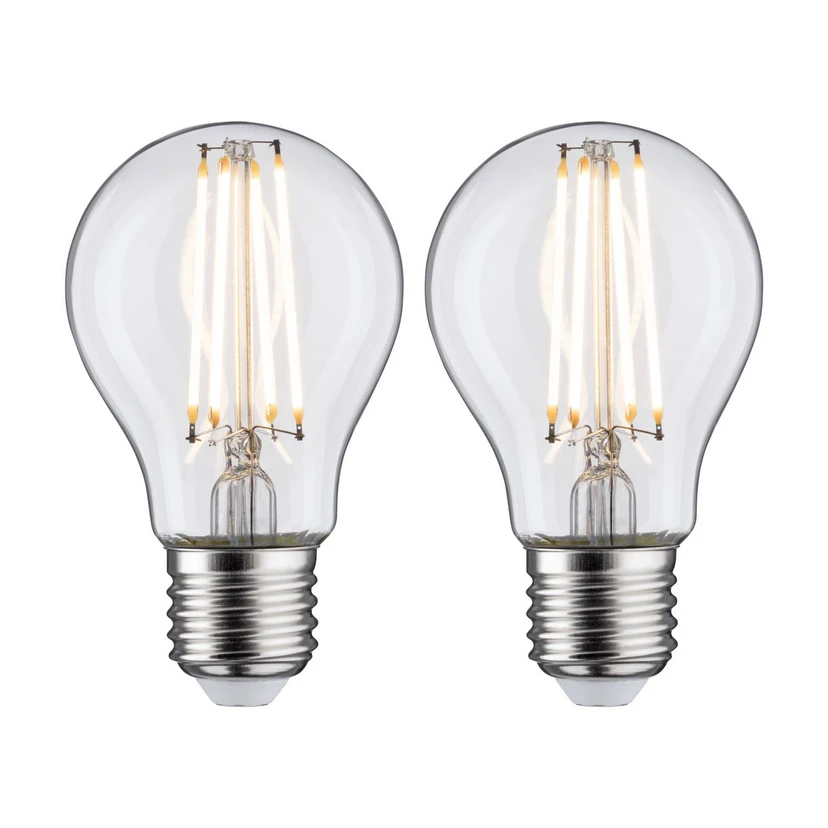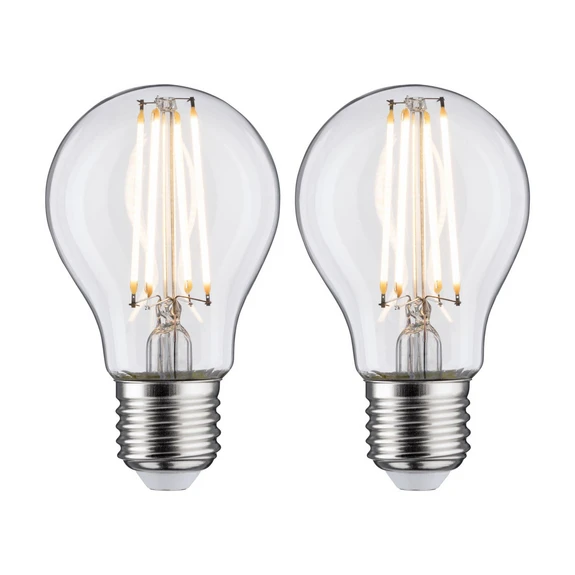 Dubbelpak LED lamp E27 7W, warmwit, gloeidraad helder Deze LED lamp wordt geleverd in een decoratieve gloeilamp-look in een handige verpakking van 2. Technische gegevens/kenmerken: - decoratieve look met heldere gloeilamp en gloeidraadtechnologie - lichtkleur warmwit (2.700 K) - vergelijkbare waarde gloeilamp 60 W - niet dimbaar