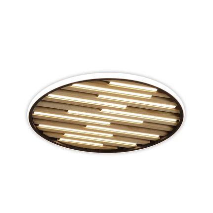 De LED plafondlamp Equalise combineert een stijlvol ontwerp met functionele verlichting en is ideaal voor woon- en eetruimtes. De plafondlamp heeft een elegante combinatie van matzwart en een lichte houtlook. De vast geïntegreerde LED-lichtbron zorgt voor een energiezuinig, warmwit licht dat een aangename sfeer creëert.