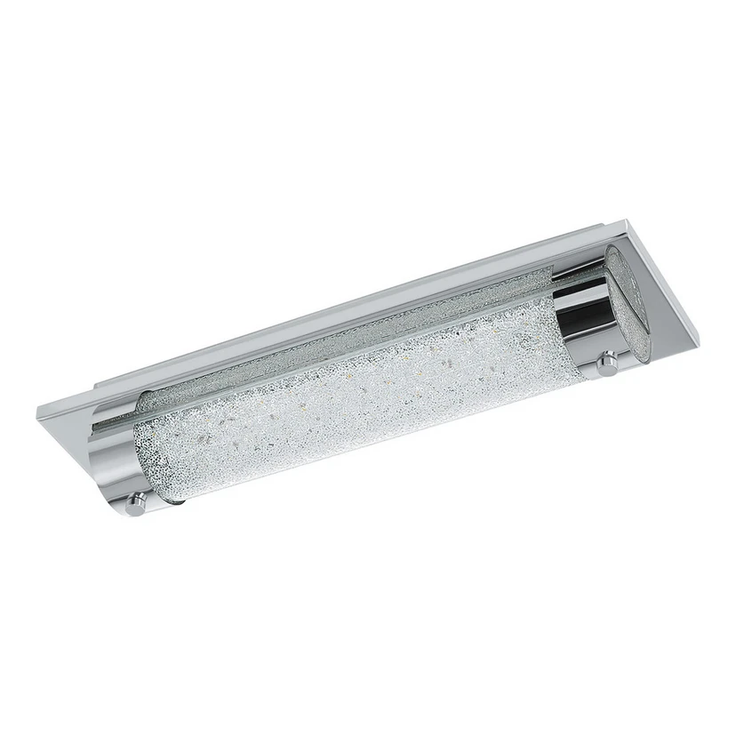 Op het rechthoekige plafondelement van roestvrij staal is een buis van helder glas bevestigd voor de LED plafondlamp Tolorico, die is ontworpen met een sprankelend kristaleffect aan de binnenkant en aan de zijkant wordt vastgehouden door twee verchroomde ringen. De edele uitstraling en het sprankelende lichteffect maken de armatuur tot een exclusief verlichtingselement, of ze nu als plafondarmatuur of als wandarmatuur wordt gemonteerd. Met IP44-bescherming tegen spatwater is de armatuur ook geschikt voor gebruik in de badkamer.