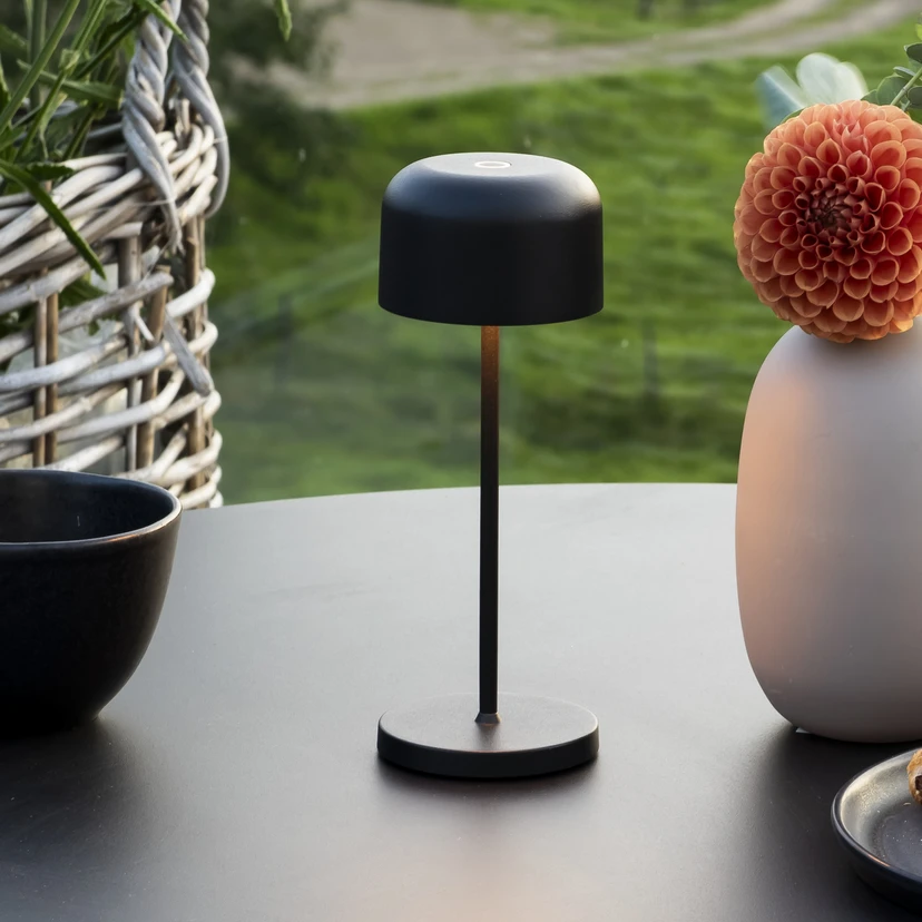 De LED tafellamp Lille met USB en IP54 voor buitengebruik