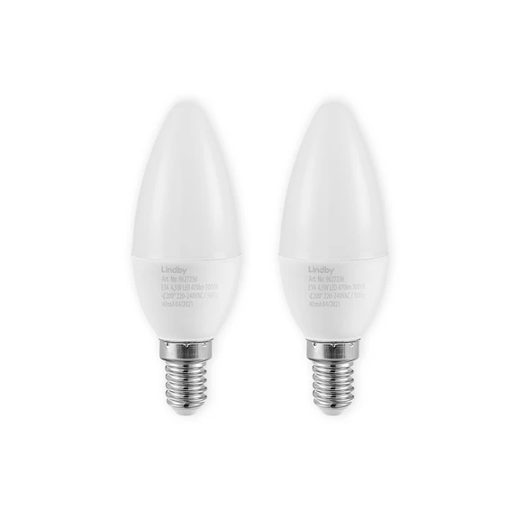 Lindby LED kaarslamp, E14, C35, 4,5W, opaal, 3000K, set van 2