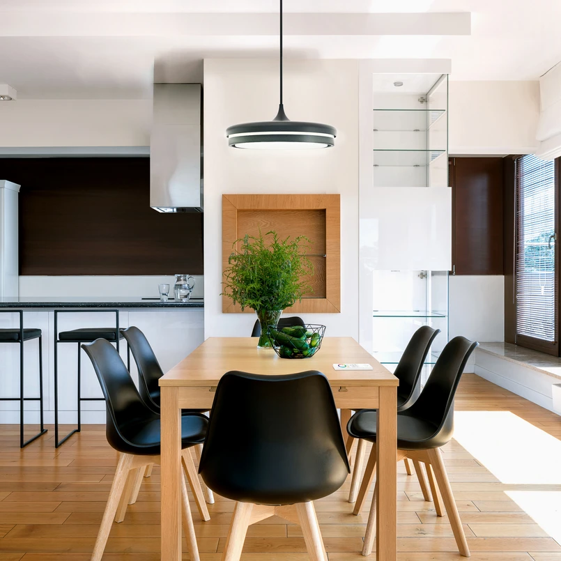 De moderne tint LED hanglamp Kea biedt licht in al zijn facetten. Verschillende tinten wit van warm wit tot daglicht of gekleurd licht van meer dan 16 miljoen kleuren kunnen gemakkelijk worden geselecteerd met de meegeleverde afstandsbediening. Voorgeprogrammeerde lichtscènes, zoals een werklamp, een nachtlamp of zelfs kleurveranderend feestlicht, kunnen ook met één druk op de knop worden opgeroepen. Bovendien kan de armatuur met de afstandsbediening traploos worden gedimd.