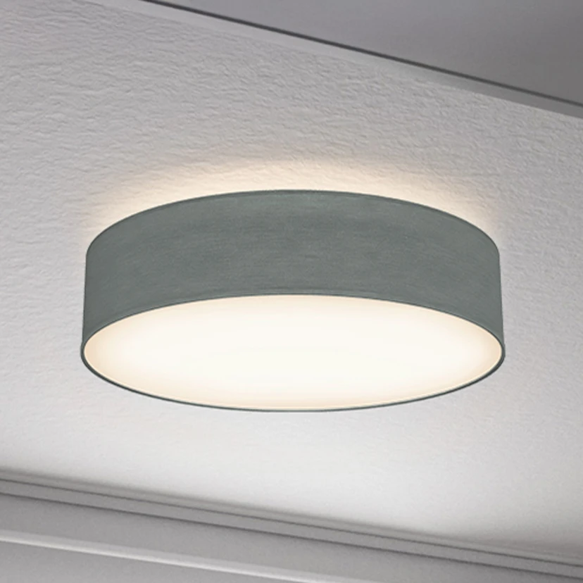 De plafondlamp Litora combineert tijdloze esthetiek met veelzijdigheid. De grijze textielen kap met witte diffuser zorgt voor een aangename lichtverdeling en creëert een harmonieuze sfeer in verschillende woonruimtes, zoals de woonkamer, slaapkamer of hal.