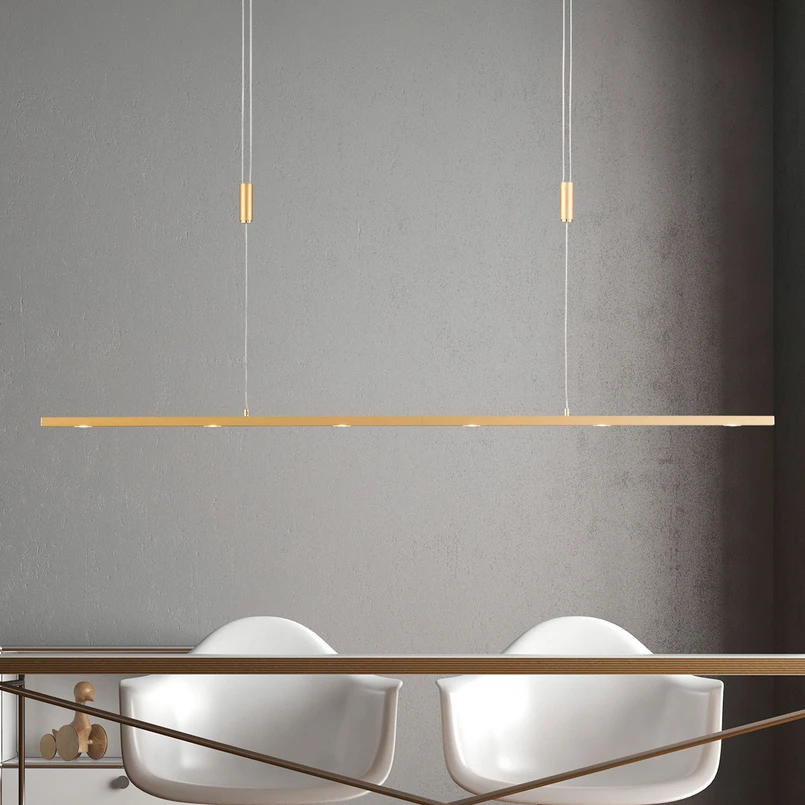 In hoogte verstelbare, in Duitsland geproduceerde LED hanglamp Tolu in een slank design met elegant messing oppervlak, extern dimbaar Tolu is een hoogwaardig product dat het label "made in Germany" mag dragen. Met haar langwerpige Form heeft de hanglamp een zeer slank, lineair ontwerp en ziet er geweldig uit in elke modieuze, puristische omgeving. De platte hanglamp is zeer geschikt voor het verlichten van een tafelblad in de eethoek, niet in de laatste plaats vanwege de hoogteverstelbaarheid (105 cm tot 195 cm), die snel en eenvoudig kan worden aangepast met behulp van een trekkabelprincipe. Het elegante messing oppervlak van de hanglamp met zijn warmwitte LED's is zorgvuldig met de hand afgewerkt en dankzij een extra groot aansluitcompartiment is de lamp eenvoudig te installeren. Je hebt ook de mogelijkheid om de helderheid van de LED's te variëren met een externe dimmer (fase-afsnijdimmer). Dit betekent dat je helder licht hebt wanneer je het nodig hebt, maar je kunt ook in een handomdraai een Candle sfeer creëren in de eethoek.