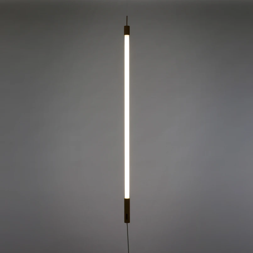 Universeel toepasbare, buisvormige LED lamp Linea met getint glas en uiteinden van lichtgekleurd hout Aan de wand gemonteerd, hangend of met een optionele houten voet (zie accessoires) als vloerlamp - Linea kan zeer flexibel worden gebruikt als allround lichtbron. Dankzij de steekkabel en schakelaar is er geen vaste bedrading nodig. Eindkappen van lichtgekleurd hout geven Linea een natuurlijke uitstraling. Deze versie van Linea is het resultaat van een samenwerking tussen Alessandro Zambelli en Selab. De Italiaanse studio voor creatief ontwerp is opgericht door Stefano Seletti. Seletti staat ook aan het hoofd van het gelijknamige label voor originele, innovatieve en extravagante producten voor meubilair, verlichting, decoratie en kunst.