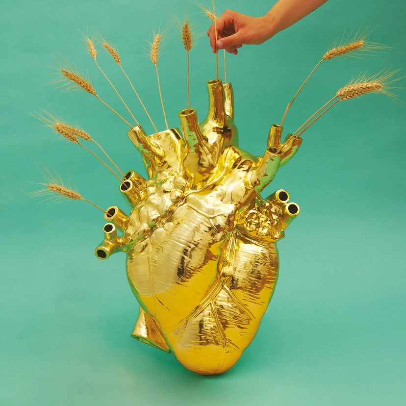 Indrukwekkende bloempot en sculptuur in één: goudkleurige Love in Bloom Giant vaas van SELETTI Ze zeggen dat je een groot hart nodig hebt in het leven. De fabrikant SELETTI gelooft net als wij in deze uitspraak en heeft daarom een van de grootste harten ter wereld gemaakt! En in deze goudkleurige versie is deze plantenpot - die ook een sculptuur is - bijzonder expressief. De Love in Bloom Giant vaas is ontworpen voor alle hopeloze romantici voor wie een klein hartje gewoon niet genoeg is!