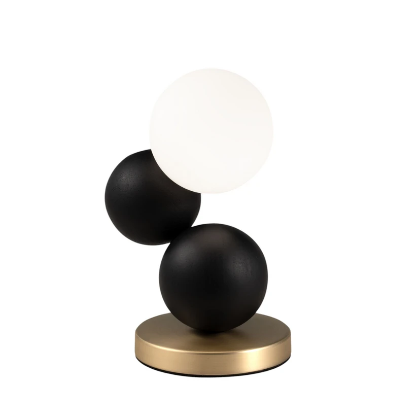 Tafellamp Micky, zwart/messing, hout, dimbaar, G9