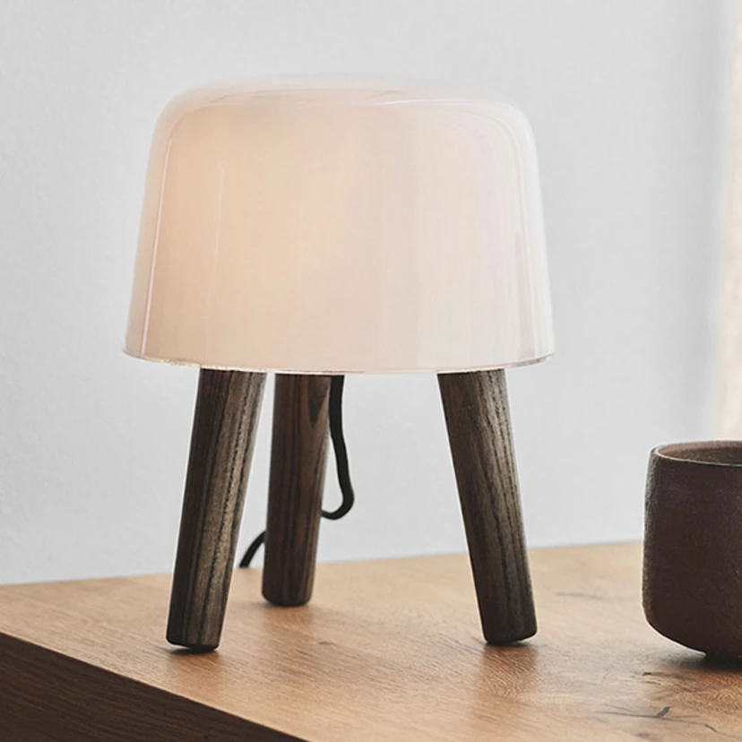 Dimbare tafellamp Milk van Norm Architects Die tafellamp Milk van het ontwerpteam van Norm Architects combineert twee natuurlijke materialen: hout en Glas. Het driepotige frame is gemaakt van massief essenhout en de ronde glazen kap is gemaakt van mondgeblazen opaalglas. Het geheel wordt gecompleteerd door een met textiel beklede kabel die is uitgerust met een dimschakelaar. Bij het kiezen van de lamp is het belangrijk dat deze dimbaar is. Milk wordt geproduceerd en gedistribueerd door de Deense design lamp &Tradition. Das produceert armaturen uit de 20e en 21e eeuw. Sommige dateren uit de jaren 1920, andere - zoals Milk - werden pas een paar jaar geleden ontworpen. Allen hebben echter een tijdloos ontwerp gemeen.