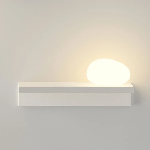 Als de LED wandlamp Suite uitgeschakeld is, zou je hem waarschijnlijk voor een eenvoudige, witte plank houden. Pas wanneer je hem inschakelt, onthult Suite zijn verfijnde LED-lichtbron, die lijkt op een lichtgevende steen die daar toevallig is neergelegd. Suite dient niet alleen als sfeervolle ruimteverlichting, maar ook als praktische opbergruimte voor kleine alledaagse voorwerpen.