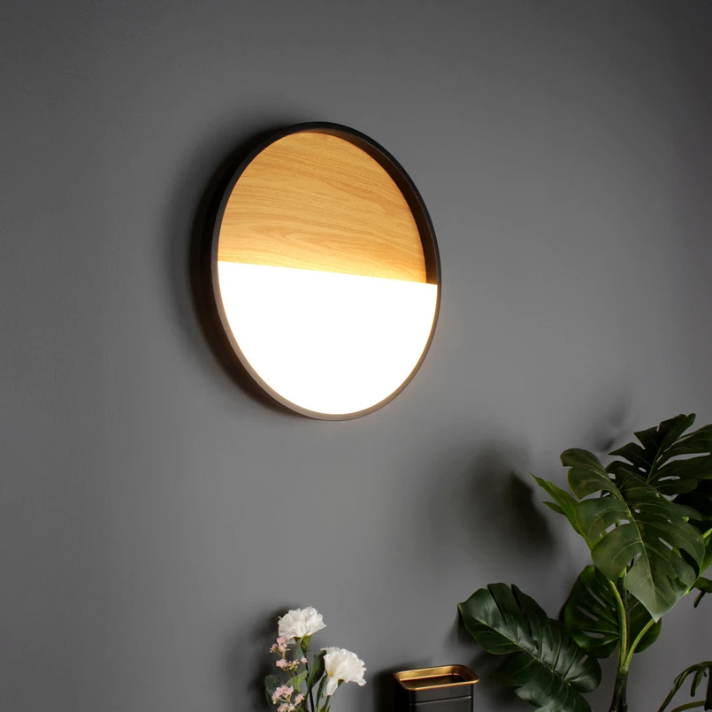 Vista LED wandlamp, licht hout/zwart, 40 x 40 cm