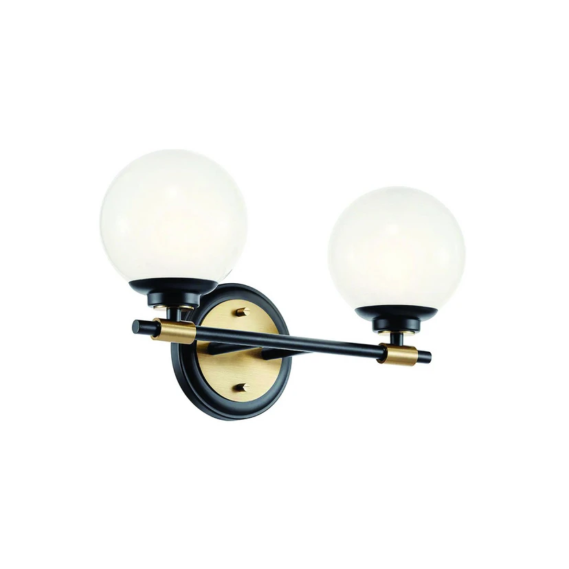 Wandlamp Benno 2 in zwart/brons met opaalwitte kappen in bolvorm